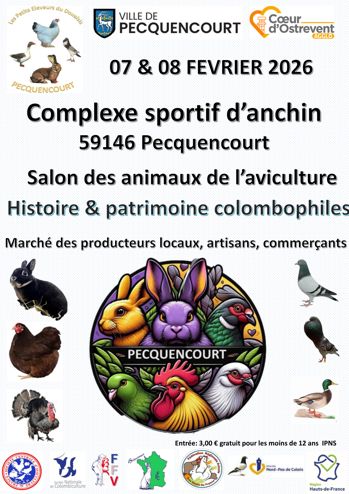 17 et 18 Janvier 2026. Evreux (27). Exposition Nationale organisée par la Société d'Aviculture de l'Eure (SAE). Championnat de France des pigeons de couleur (CFPC), capucin (PCSC), volailles sussex/dorking (SDCF), serama (SCF), et section volailles du CSRAN. Championnat régional des volailles brahma (BCDF), pigeons sottobanca (SCF) et lapins argenté (ANA). Partenaire de la course aux points du LCF. Divers prix spéciaux. Le Guet Yoann, Tél. 06 75 31 20 72, E-mail societe.aviculture.eure27@gmail.com