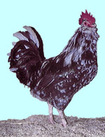 surtout recherchée en raison de l'aptitude du coq de la variété bleue à se prêter à la fabrication de